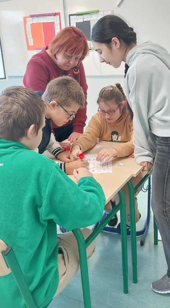 Uczniowie rywalizowali w grupach między sobą (klasy młodsze 4a i 5a oraz starsze 7a i 8a).